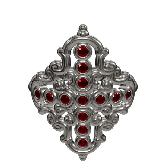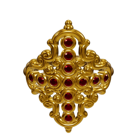 Anillo Creu Mallorquina JVP Rococó V2 Granates